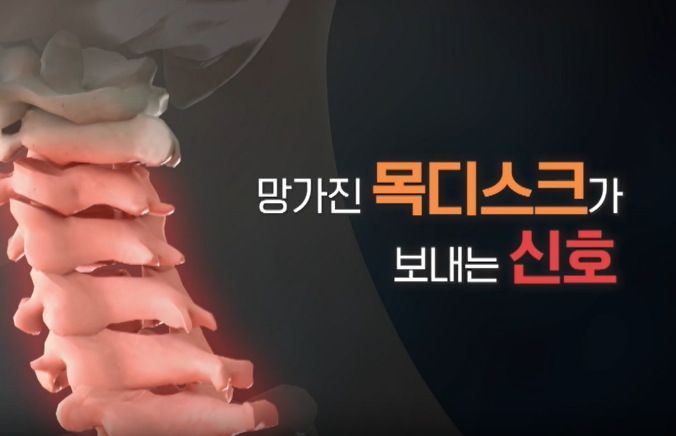 하지만 나이가 들면서 수핵의 수분 함량이 줄어들고 탄력성을 잃으면서 디스크가 점점 약해지게 됩니다. 이와 더불어 잘못된 자세나 사고로 인해 척추에 강한 압력이 가해지면, 디스크가 본래의 위치에서 벗어나 신경을 압박하게 됩니다.이러한 상태를 '경추 추간판 탈출증', 즉 흔히 말하는 '목디스크'라고 부릅니다. 목디스크는 경추 부위에 발생한 디스크 탈출로 인해 신경근이 자극을 받아 통증이 유발되는 질환입니다.