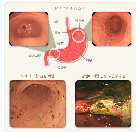 - 알코올, 약물(아스피린, NSAIDs)