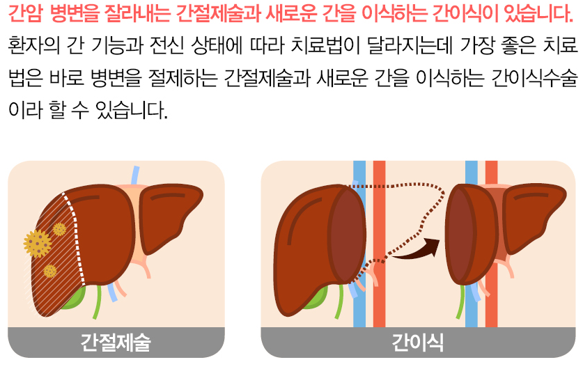 간암 치료는 환자의 간 기능과 전반적인 상태에 따라 달라집니다. 초기 단계에서는 간 절제술(간 일부를 제거하는 수술), 간 이식, 고주파 열치료, 에탄올 주입술 등의 방법을 통해 근치적인 치료를 목표로 합니다. 만약 간암이 진행된 경우에는 경동맥화학색전술, 방사선치료, 항암화학요법 등이 사용될 수 있습니다.