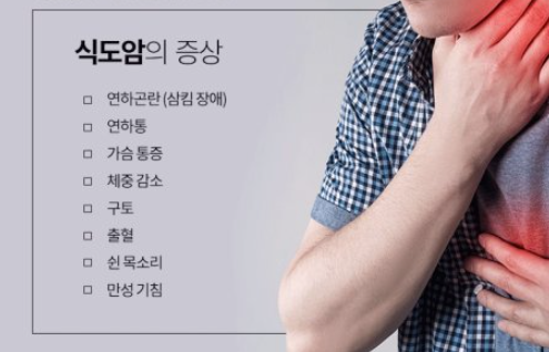 식도암의 주요 증상에는 음식을 삼키기 어려움과 식도 통증이 있습니다. 식도암이 진행될수록 증상이 악화되며, 음식을 삼키기 어려움이 커지고 체중 감소와 영양실조가 동반될 수 있습니다. 심한 경우 음식물이 기도로 들어가 기침이나 흡인성 폐렴이 발생할 수 있습니다. 또한 식도암이 기관 등을 침범하면 기침, 객혈 등의 증상이 나타날 수 있습니다.