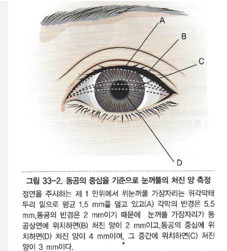 이때 눈꺼풀이 움직이는 거리를 측정합니다.