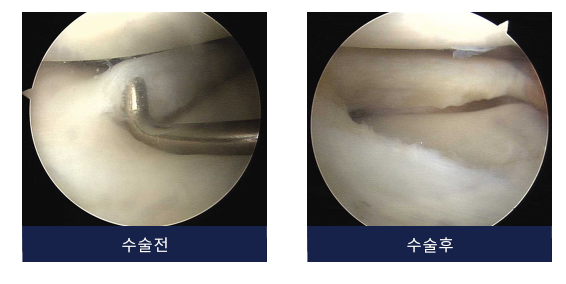 - 실제 관절 내를 직접 보며 연골 상태를 정확히 평가합니다.