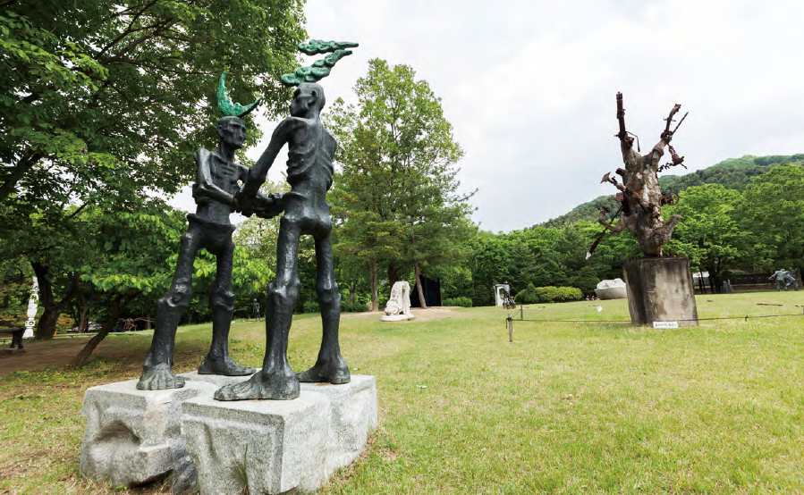 정오를 지나 뜨거운 햇볕을 잠시 피해갈 요량으로 모란미술관의 문을 열었다. 모란미술관은 1990 년 개관해 국내외 우수한 현대 미술 작품을 수집, 보존해 소개하는 곳으로 8,600여 평(약 2만8,000m²)에 이르는 야외 전시장과 실내 전시실을 갖춰 여유롭게 산책하면서 사색하기 좋은 휴식공간이다. 잘 가꾼 드넓은 정원에 전시된 다채로운 조각품을 관람하면서 따스한 햇살을 온몸으로느끼면 성숙한 문화인이 된 듯한 기분마저 들면서 마음이 평온해진다. 넓은 정원을 호젓하게 걷는데 오로지 하나의 조각 작품만을 위해 만든 공간이 눈에 띈다.