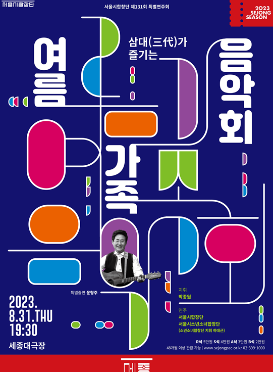서울시합창단과 서울시소년소녀합창단이 함께 세종문화회관 대극장 무대에 오른다. <여름 가족 음악회>는 삼대(三代)가 함께 즐기는 가족 음악회로 클래식에서 동요, 대중음악 등 들으면 누구나 즐겁게 따라 부를 수 있는 다채롭게 구성하였다. 합창음악의 무한 매력을 어린이에서 할아버지, 할머니, 아빠, 엄마가 합창음악으로 소통하고자 한다. 쎄씨봉으로 유명한 가수 ‘윤형주’가 특별출연한다.