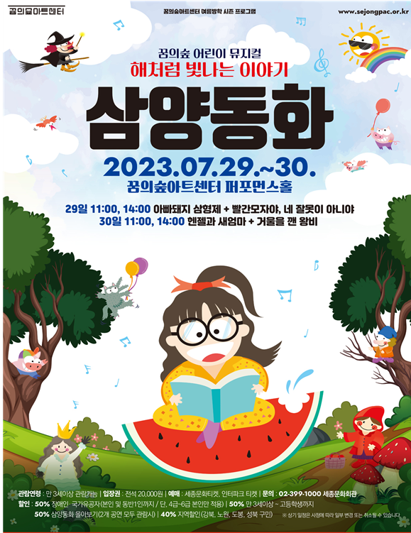 세종문화회관(사장 안호상)은 여름방학을 맞이하여 7월과 8월 어린이와 청소년 그리고 가족 관객을 위한 뮤지컬과 클래식공연, 전시를 마련하였다.
