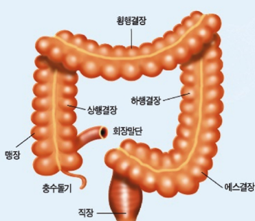 대장은 회장의 끝 부분에서 항문까지 이르는 장기로 결장과 직장으로 구성되어 있는데요.