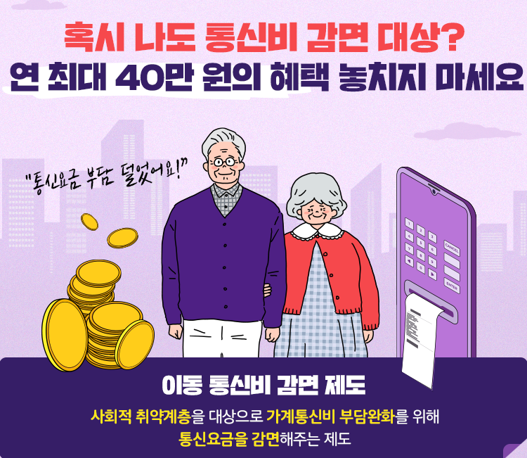 정부는 사회적 취약계층을 위해 정부에서는 통신비 할인 감면제도를 실시하고 있는데요. 자세히 알아봅니다.